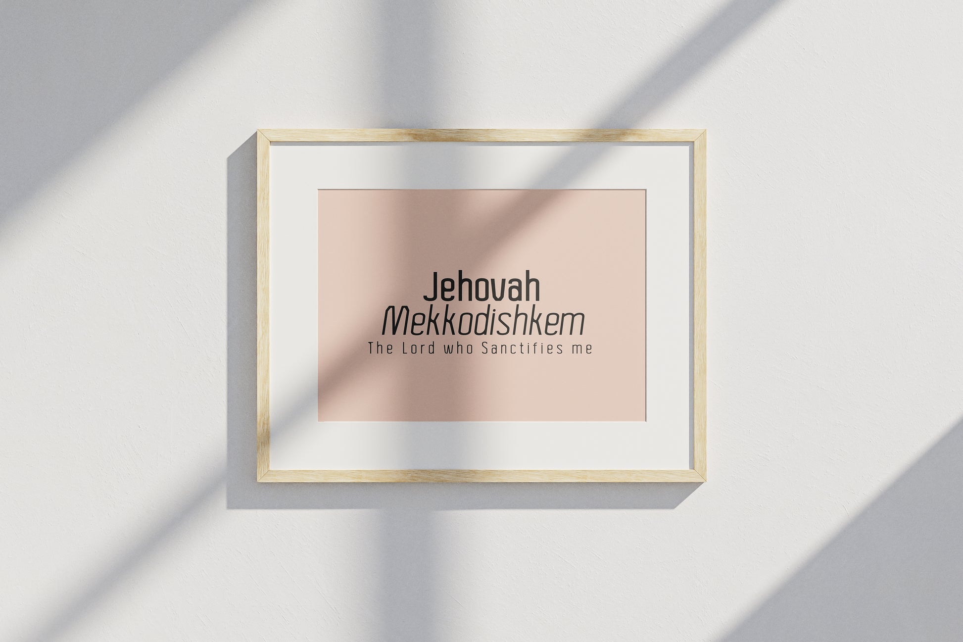 Part of my Jehovah Series, this minimalist typographic print proclaims Jehovah Mekkodishkem—“The Lord who sanctifies me” (Exodus 31:13). Hang it as a daily reminder that God is continually shaping, refining and making you holy.