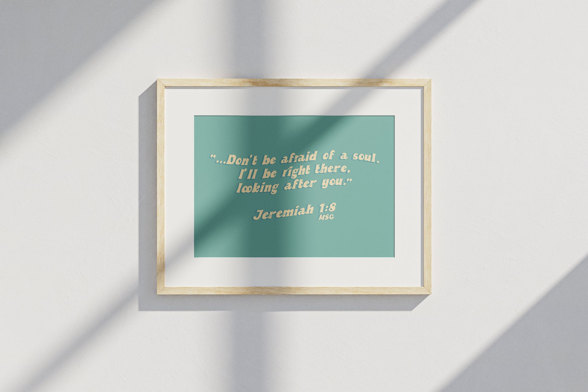Spoken to a young Jeremiah, these words still breathe courage today. Hang this minimalist typographic print in any room as a daily reminder that Christ—the ultimate Comforter—stands beside you, banishing fear and strengthening faith.